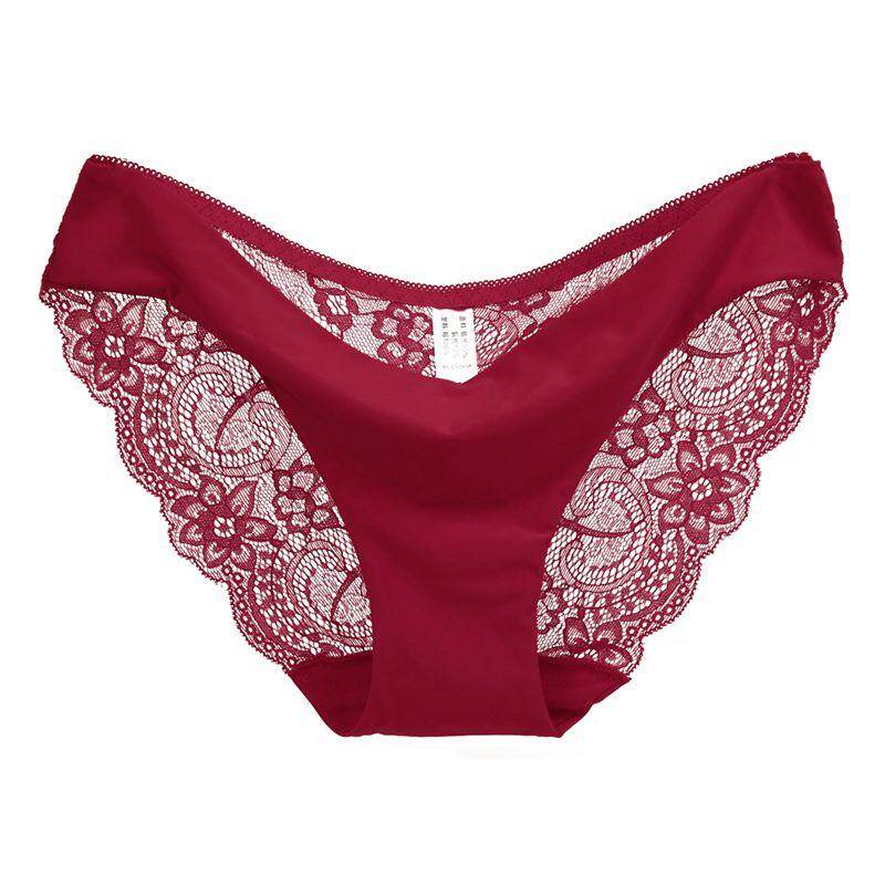 Women Fashion nylon Lace Silk Seamless Underwear Female Breathable Sexy Lace Panties wine red L