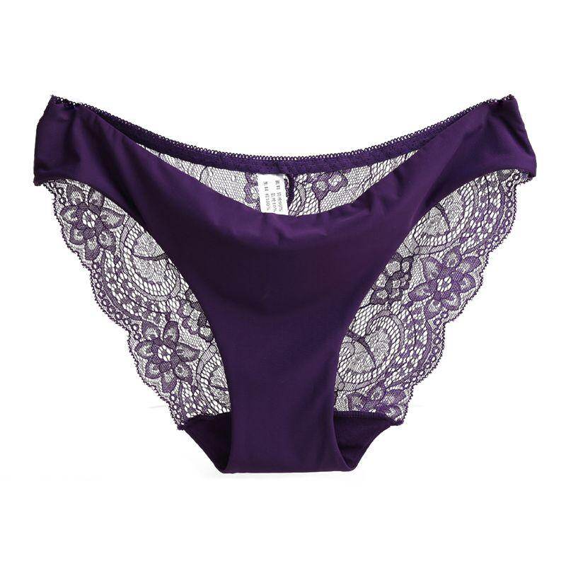 Women Fashion nylon Lace Silk Seamless Underwear Female Breathable Sexy Lace Panties deep purple XL