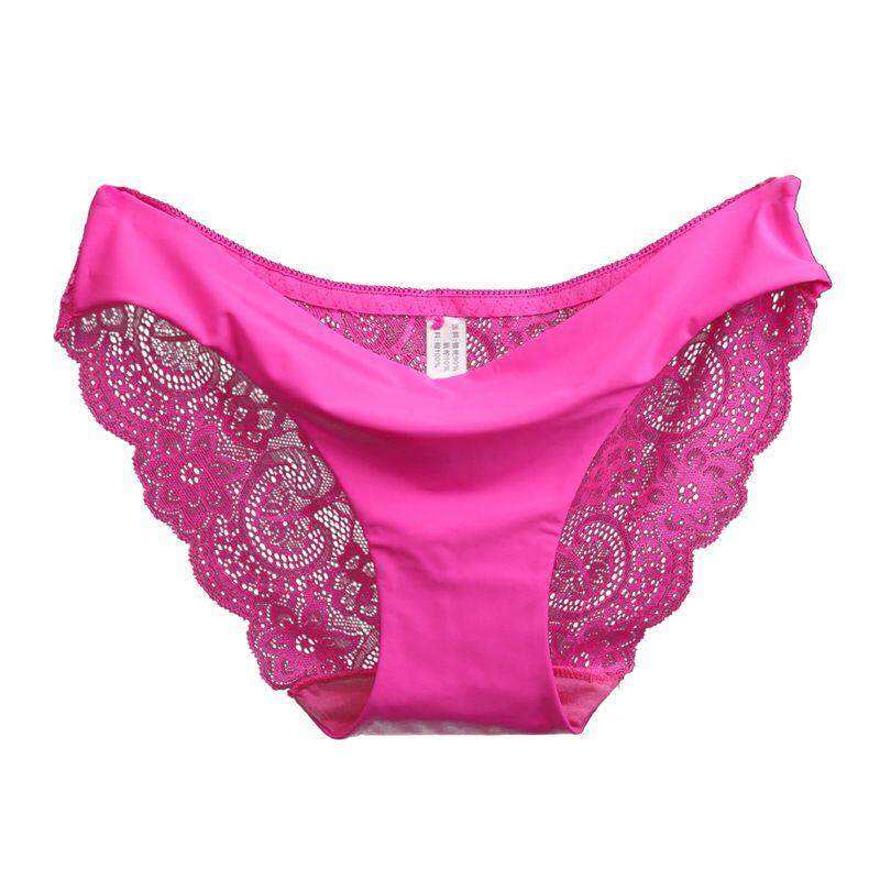 ถูกที่สุด Women Fashion nylon Lace Silk Seamless Underwear Female Breathable Sexy Lace Panties rose red M ราคา 85 บาท คุณภาพดี!!!