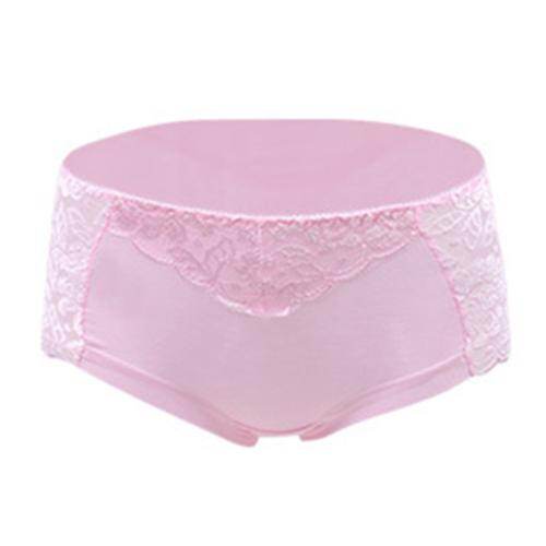 Womens Sexy Mid Waist Floral Lace Briefs Seamless Panties pink XXXL